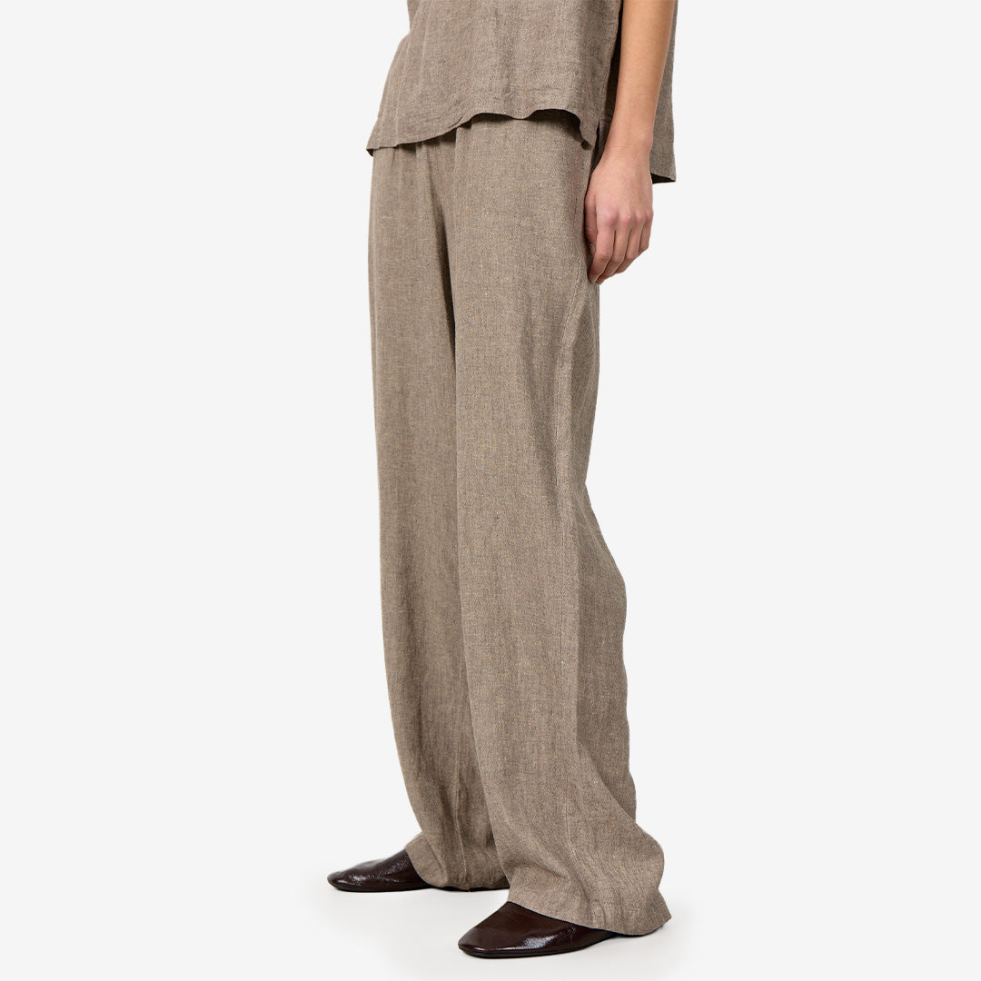 LR-NAJA 7 är en elegant och bekväm byxa i en luftig kvalitet av linne och bomull, perfekt varma sommardagar. Den elastiska midjan ger en skön passform, medan de raka benen skapar en tidlös och avslappnad silhuett. Ett mångsidigt plagg som passar lika bra till vardag som till festligare tillfällen.