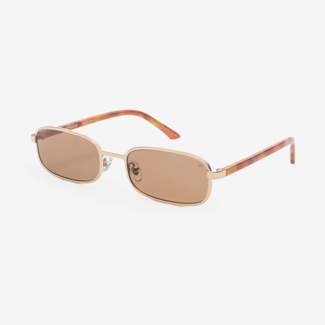 NOAH Gold Burnt Amber är ett par eleganta unisex-solglasögon med modern pilotinspiration och en varm guld färgad ram. Den brända guldfärgade tonen med subtila horninslag ger ett sofistikerat och trendigt uttryck som passar både till vardags och mer uppklädda outfits.