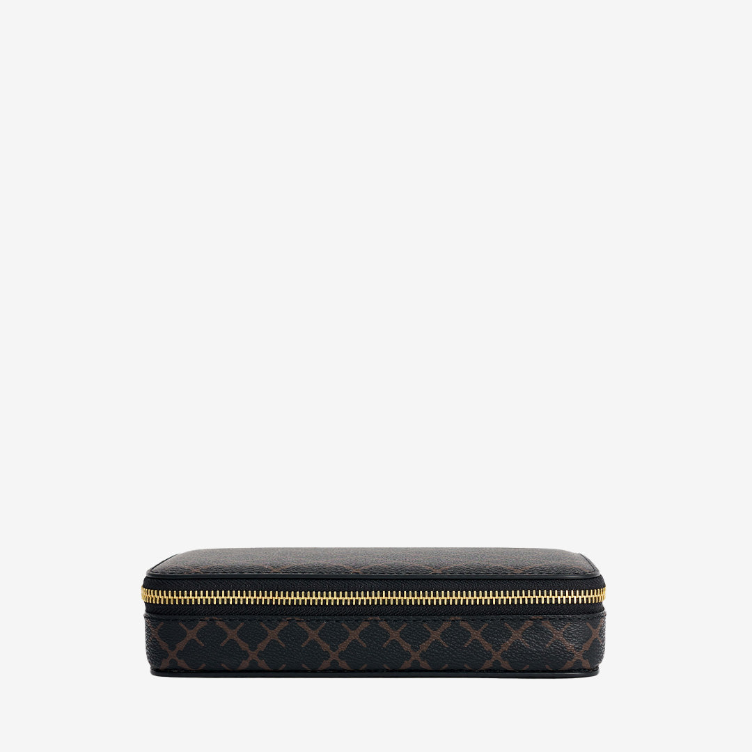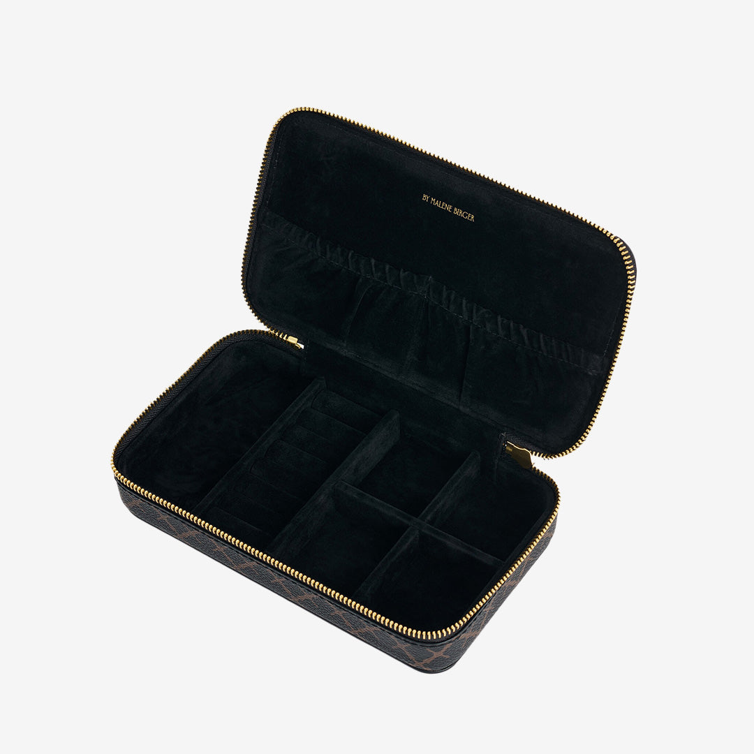 Smyckesfodral i färgen Dark Chocolate med Signature Flower-tryck och organiserade fack.