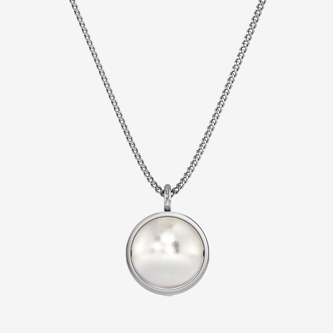 Gabrielle kombinerar kedjor och pärlor för en modern, polerad look. Här i ett stilrent halsband i blankt rostfritt stål med en pärlemorpärla fäst direkt på en tunn kedja – ett elegant smycke som passar lika bra till vardags som till festligare tillfällen.