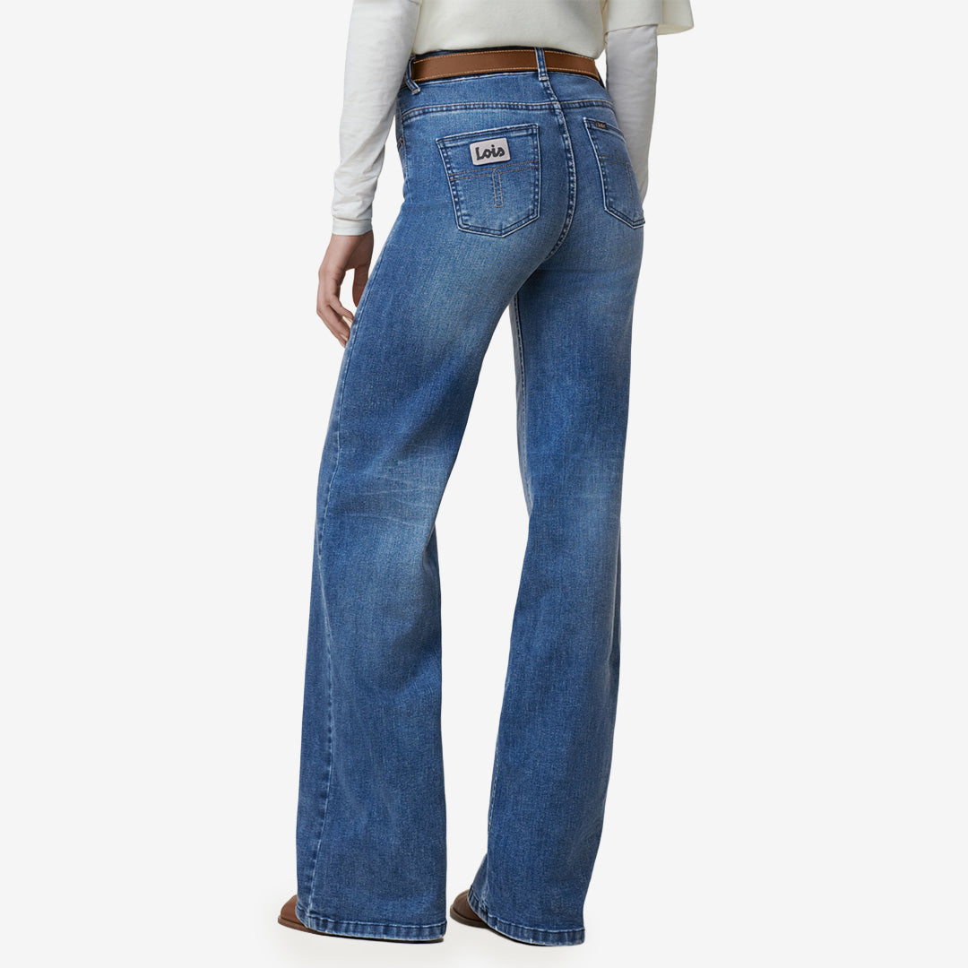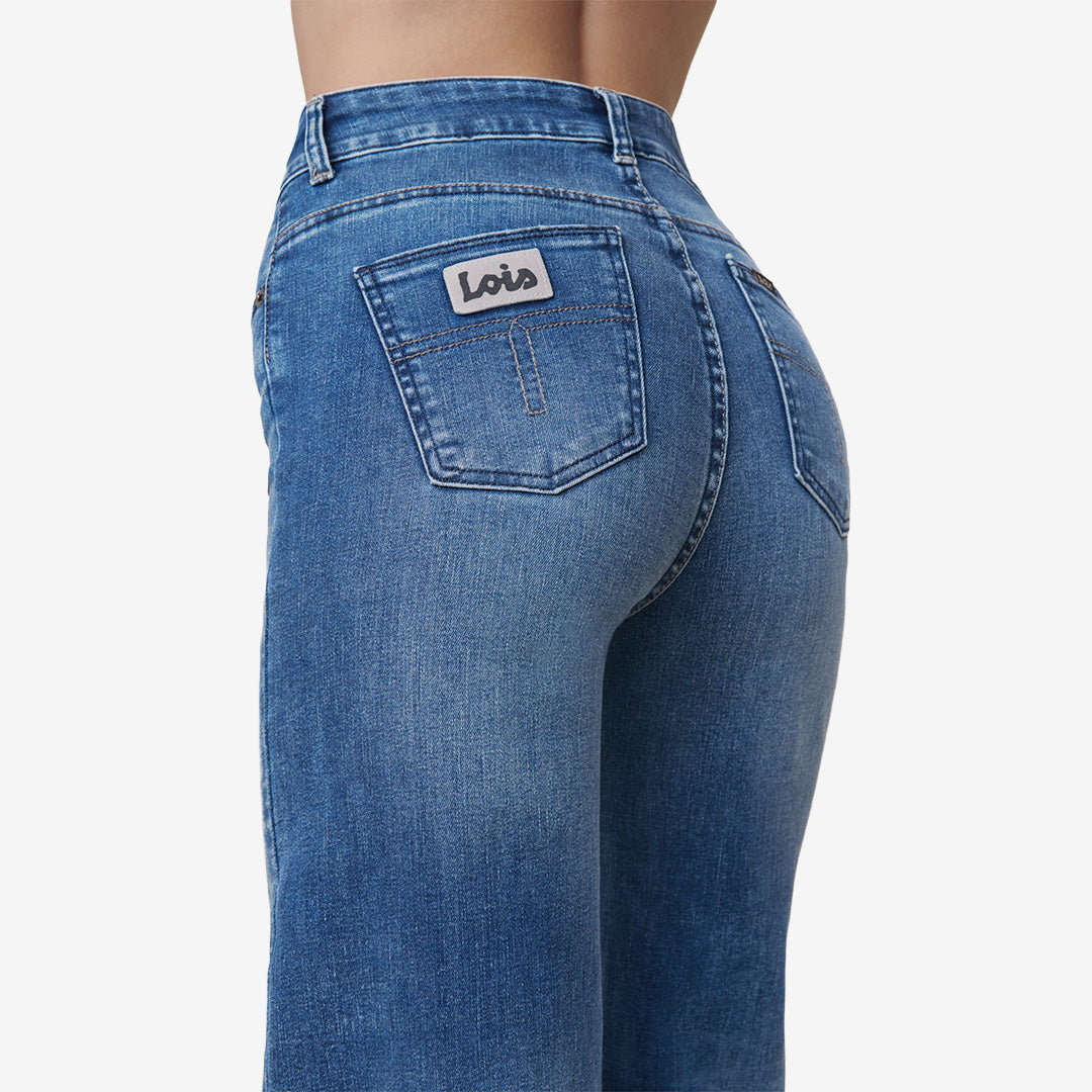 Lois Palazzo jeans i färgen Cobalt Stone med mid-rise och vid passform.