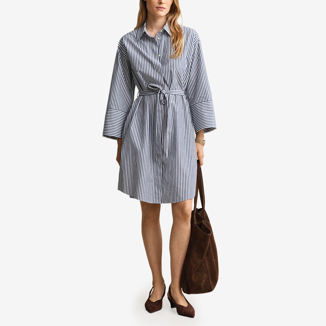 STRIPE POPLIN BELTED SHIRT DRESS