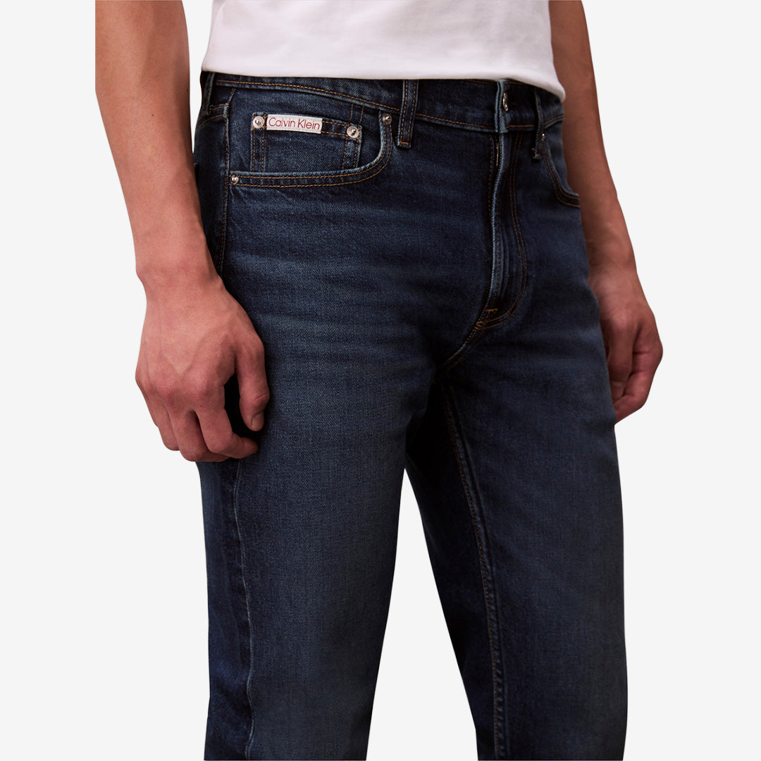 Slim Taper Oil Slick från Calvin Klein är ett par moderna denimjeans med avsmalnande passform som ger en stilren silhuett. Jeansens stretchiga bomullsblandning ger både komfort och rörelsefrihet, vilket gör modellen perfekt för vardag och mer uppklädda tillfällen.
