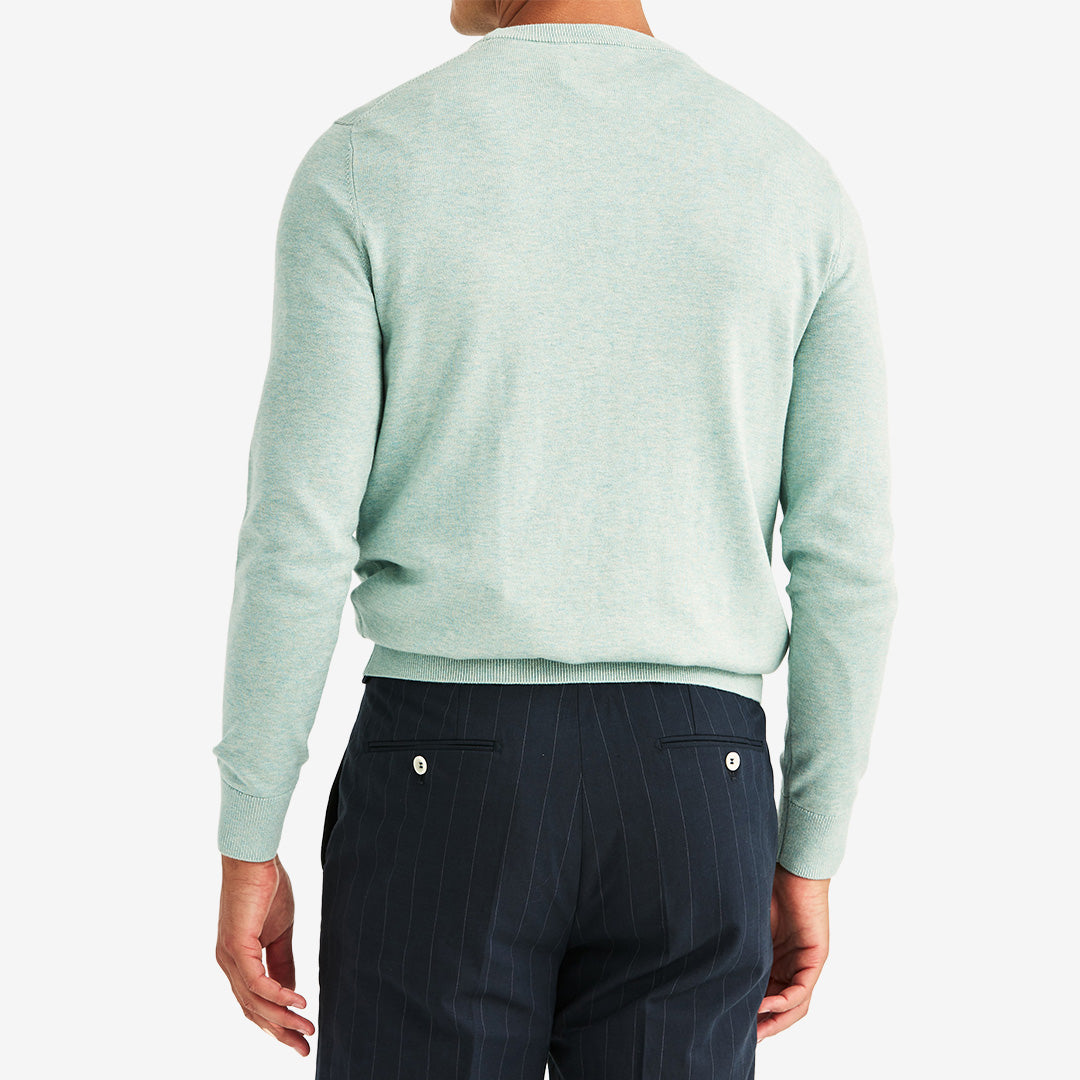 Riley Oneck i Green från Morris är en långärmad tröja i 100% bomull med klassisk rund hals. Den mjuka bomullen ger en bekväm passform medan den stilrena designen gör den enkel att bära både till vardag och mer uppklädda tillfällen med en skjorta under.
