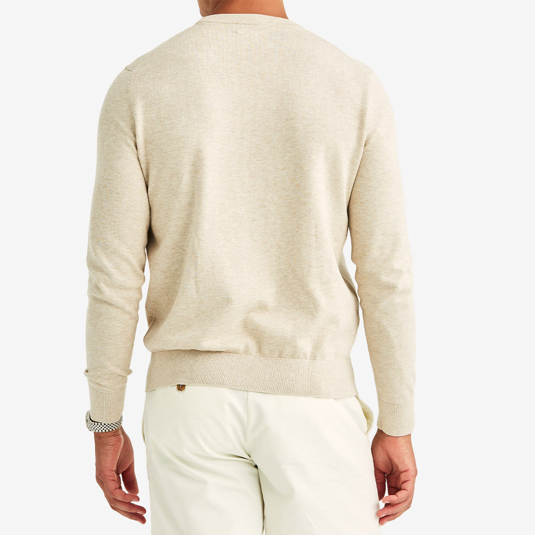 Riley Oneck i beige från Morris är en långärmad tröja i 100% bomull med klassisk rund hals. Den mjuka bomullen ger en bekväm passform medan den stilrena designen gör den enkel att bära både till vardag och mer uppklädda tillfällen med en skjorta under.