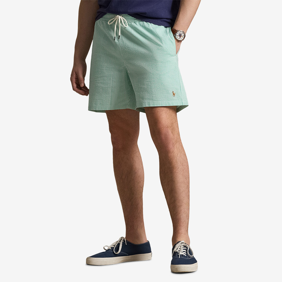 Dessa badshorts från Polo Ralph Lauren är ett självklart val för dig som söker stilrena och funktionella badshorts för strand, pool och semester. Vi gillar den klassiska passformen som sitter bekvämt i midjan med något vidare ben för rörelsefrihet. Den elastiska midjan med dragsko ger enkel justering och hög komfort, medan innerbyxan i mesh bidrar till en behaglig känsla hela dagen. Designen är tidlös och sportig, kompletterad med den ikoniska broderade ponnylogotypen som ger ett exklusivt uttryck. Ett utmärkt val för både yngre och äldre som vill investera i badshorts från Polo Ralph Lauren med lång livslängd.
