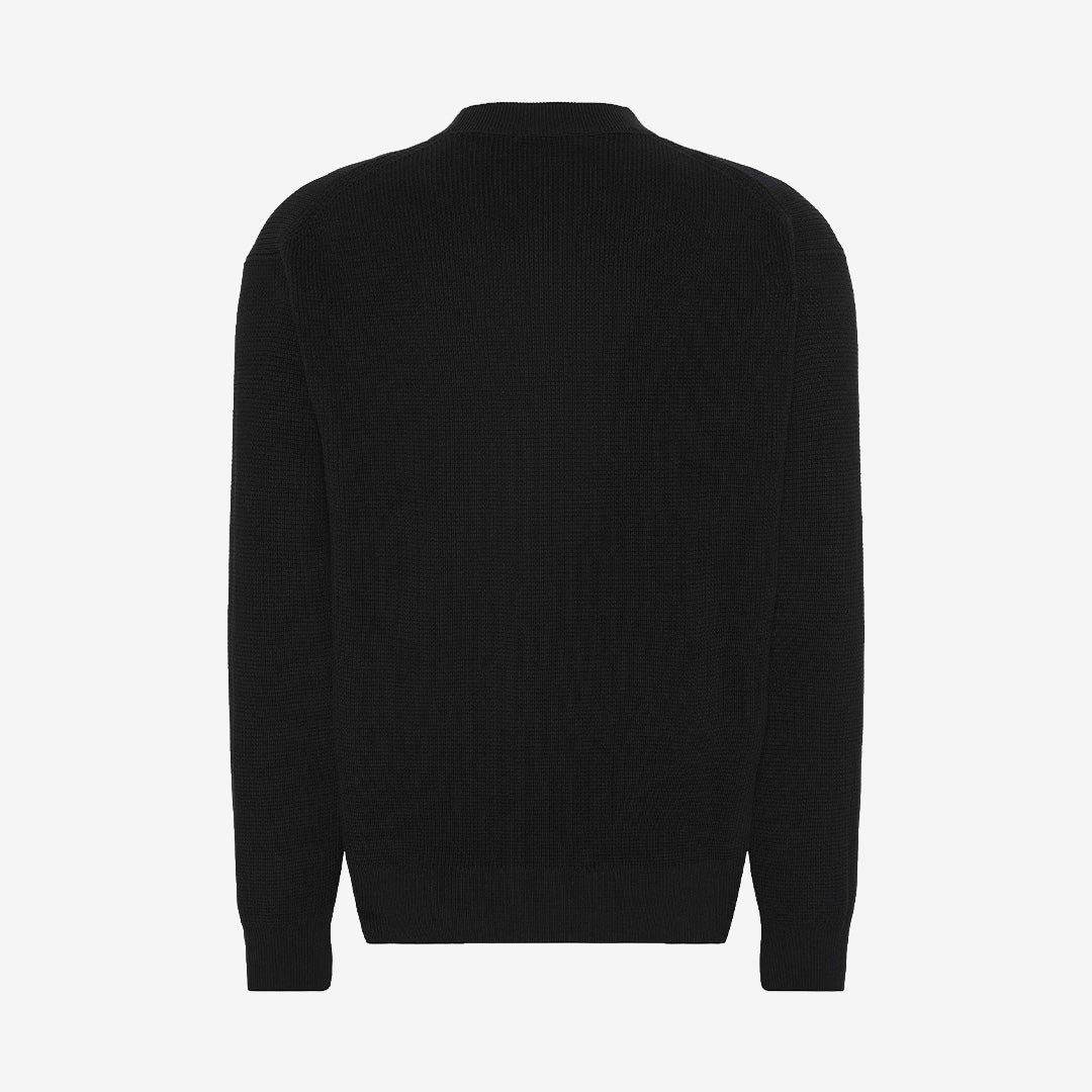 Långärmad tröja i 100% bomull med en mjuk och strukturerad waffle-kvalitet som ger både komfort och stil. Passar lika bra till jeans som till finare byxor.