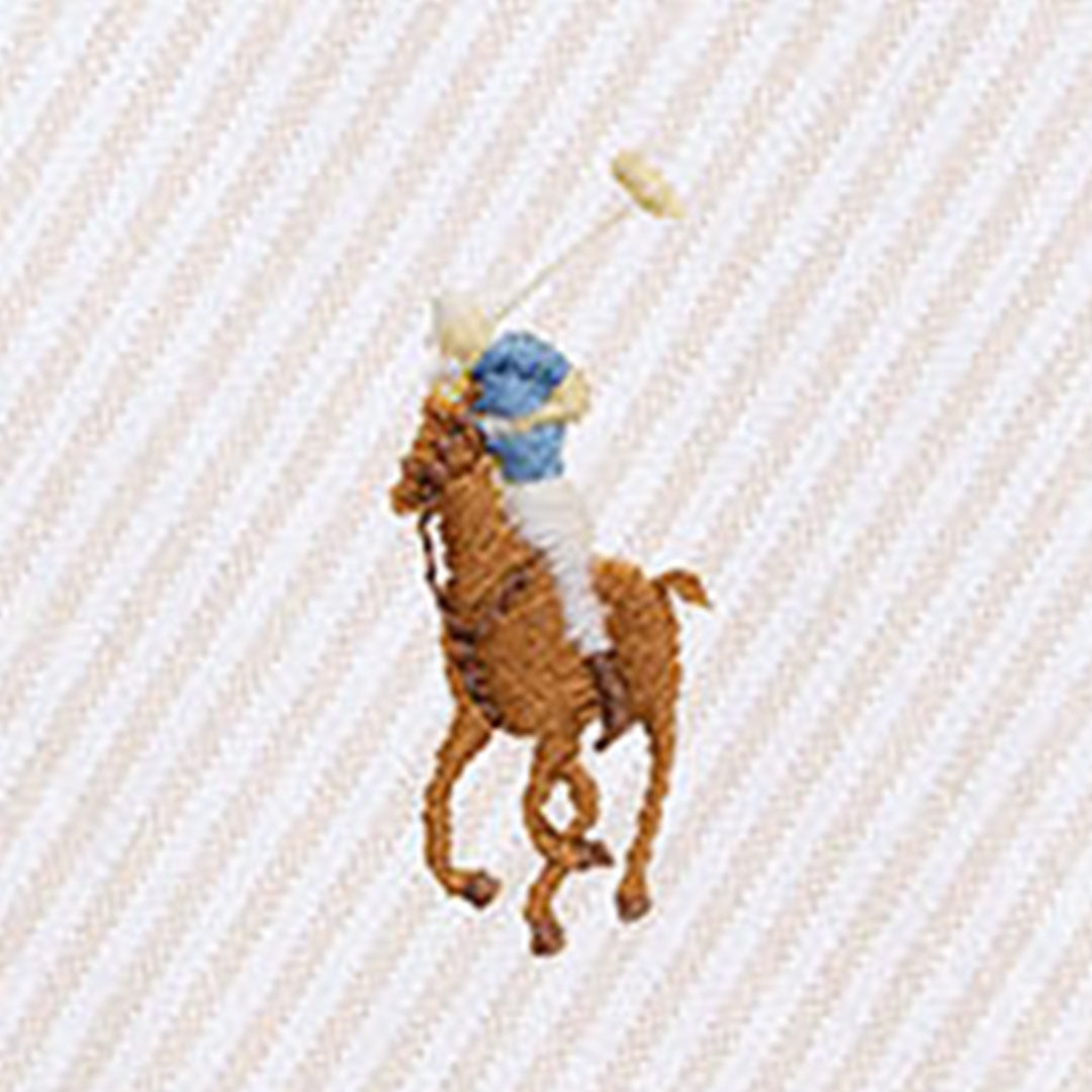Slim Fit Striped Oxford Shirt från Ralph Lauren är en modern version av den ikoniska oxfordskjortan. Tillverkad i 100% bomull med ett klassiskt randigt mönster och en smal passform som är skräddarsydd nära kroppen med smala ärmar och högre ärmhål. Skjortan har button-down-krage, knappslå framtill och manschetter med knappar. En delad ryggok med boxpleat ger ökad komfort och rörelsefrihet. Den multicolour broderade Pony-loggan på bröstet sätter den autentiska Ralph Lauren-prägeln. Ett tidlöst plagg som fungerar lika bra till vardags som till kontoret.