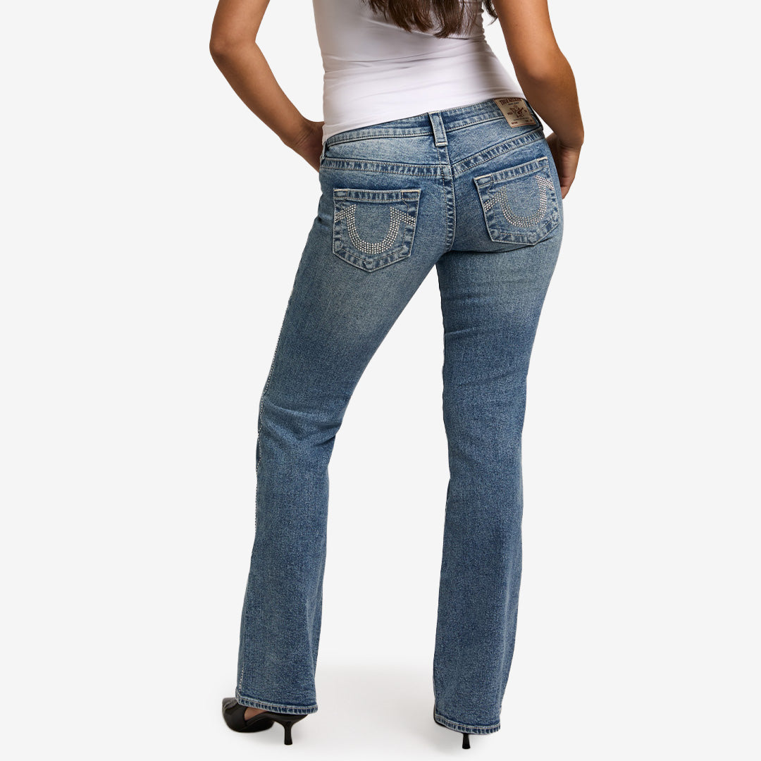 Jeansen har låg midja och är en klassisk bootcut-modell som skapar en smickrande silhuett. Tillverkade i bomull med stretch för en bekväm passform som passar både vardag och mer uppklädda tillfällen.