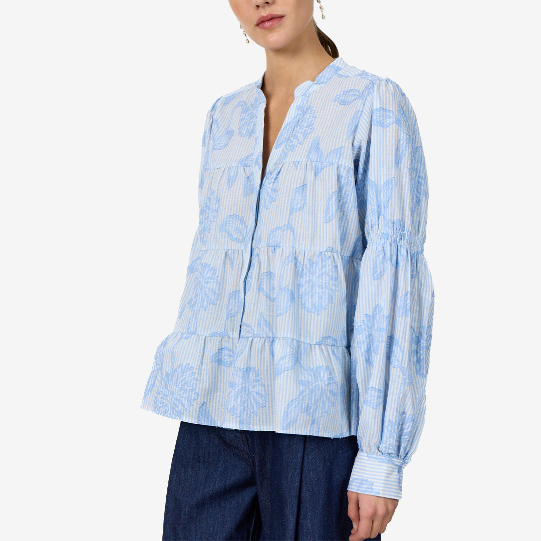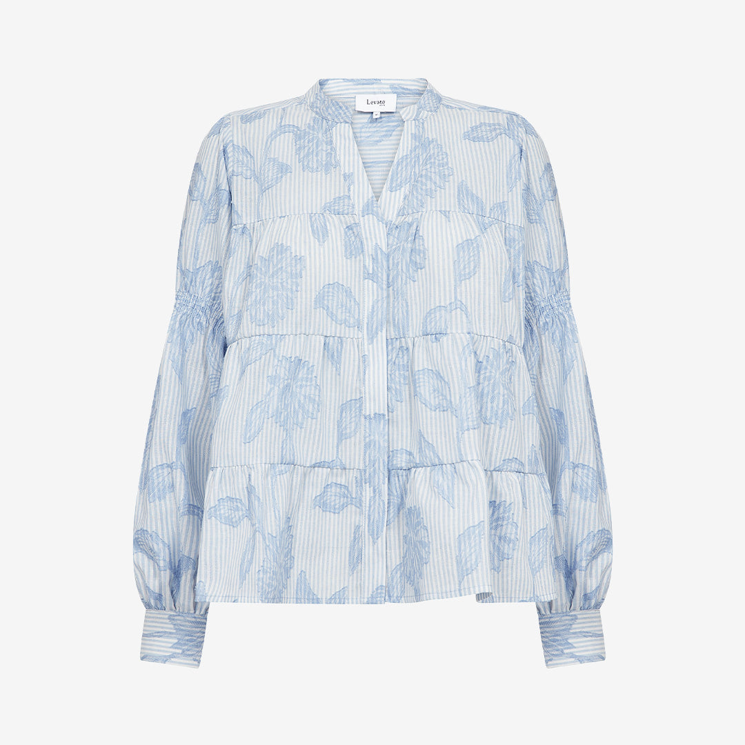 LR-PISA 2 är en elegant skjorta med ett dekorativt blommönster och en avslappnad passform. Den har en smickrande v-ringning samt knäppta manschetter som ger ett stilrent uttryck. Ett mångsidigt plagg som passar både till vardags och finare tillfällen. Styla med byxor för en mer uppklädd look eller med en klassisk kjol för ett tidlöst och elegant intryck.
