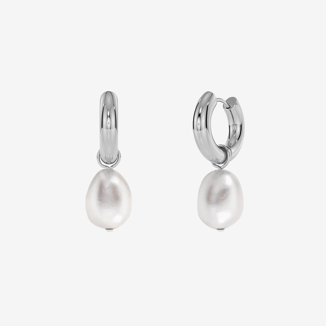 De större hoopsen i serien Perla har stora sötvattenpärlor som charms. Dessa eleganta örhängen i blankt rostfritt stål ger en sofistikerad och tidlös look som passar lika bra till vardag som till festligare tillfällen.