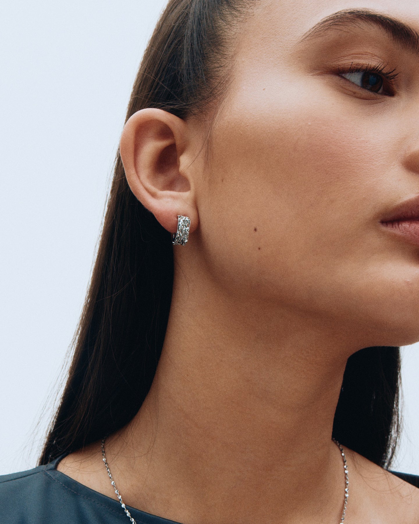 Serien Rays tunna kedjor strålar med stil utan glittrande stenar. Dessa små hoops i blankt rostfritt stål är lättstylade och kramar fint runt örsnibben. Med en storlek på 6x14 mm blir de ett elegant och tidlöst tillskott till varje outfit. Passar lika bra till vardag som till festligare tillfällen.