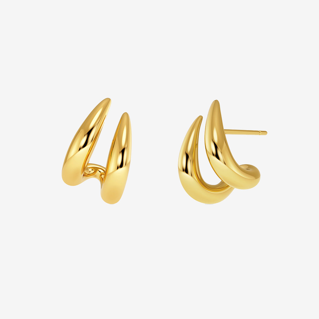 Spire har en cool kloform och dessa stora hoops i 14K guldplätering på rostfritt stål ger intrycket av två örhängen i stället för ett när de bärs. Med en storlek på 12x18 mm blir de ett iögonfallande och trendigt tillskott till varje outfit. Passar lika bra till vardag som till festligare tillfällen.