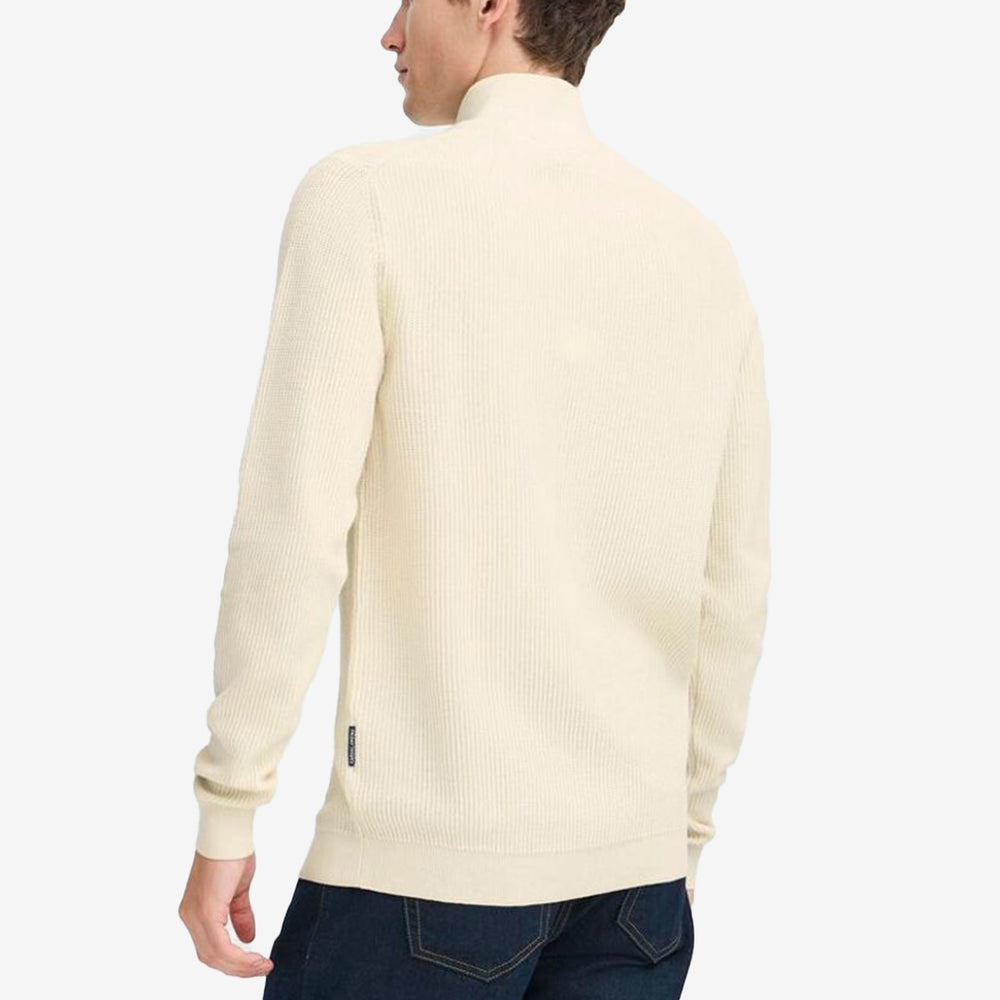 CFNOAR är en stickad halfzip-tröja i 100 % bomull med en strukturerad yta som ger ett modernt och stilrent uttryck. Färgen Rainy Day är en mjuk, ljusgrå nyans som skapar ett fräscht och tidlöst intryck – perfekt för både vardag och mer avslappnade kontorslooks. Tröjan har hög krage med dragkedja samt ribbade muddar och fåll för en bekväm passform. Ett mångsidigt plagg som fungerar lika bra över en skjorta som ensam.