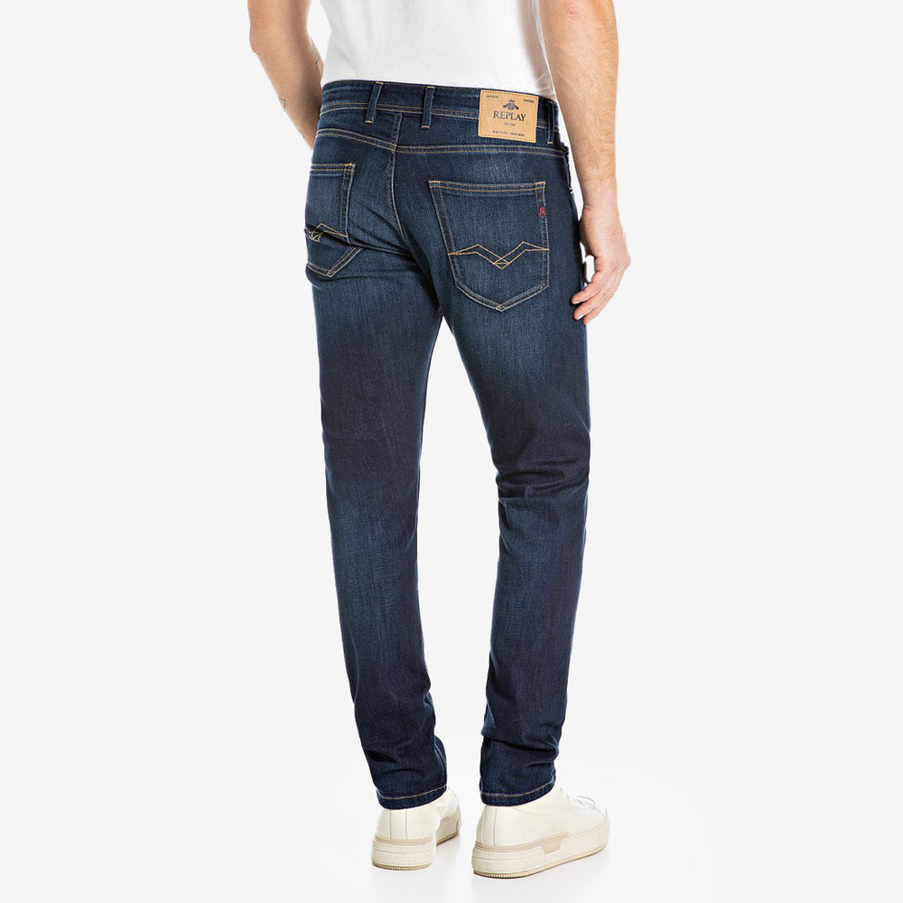 Replays raka jeans erbjuder en klassisk passform med regular midja och raka ben från höft till fåll, vilket ger en bekväm och tidlös stil. Mörkblå klassiska jeans som passar lika bra till kontoret som till vardags.