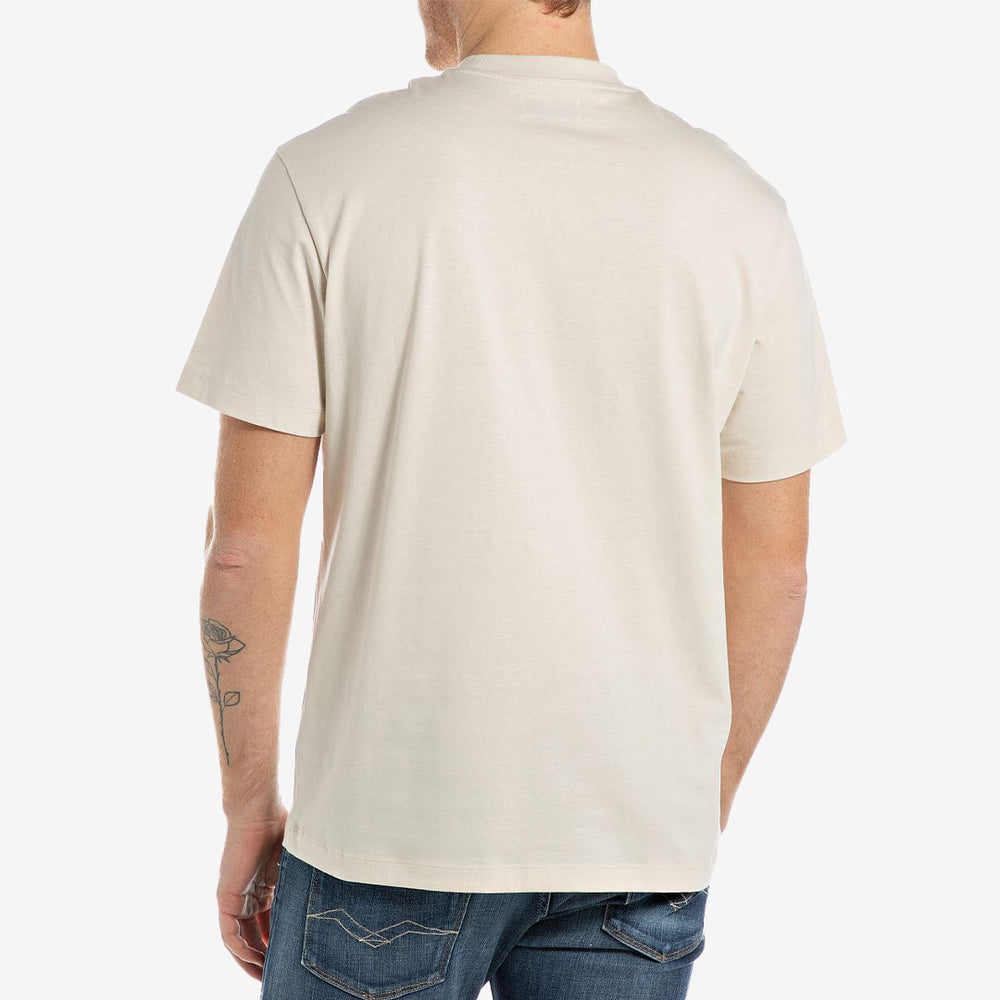 Beige bomulls tee från Replay med stort grönt tryck fram.