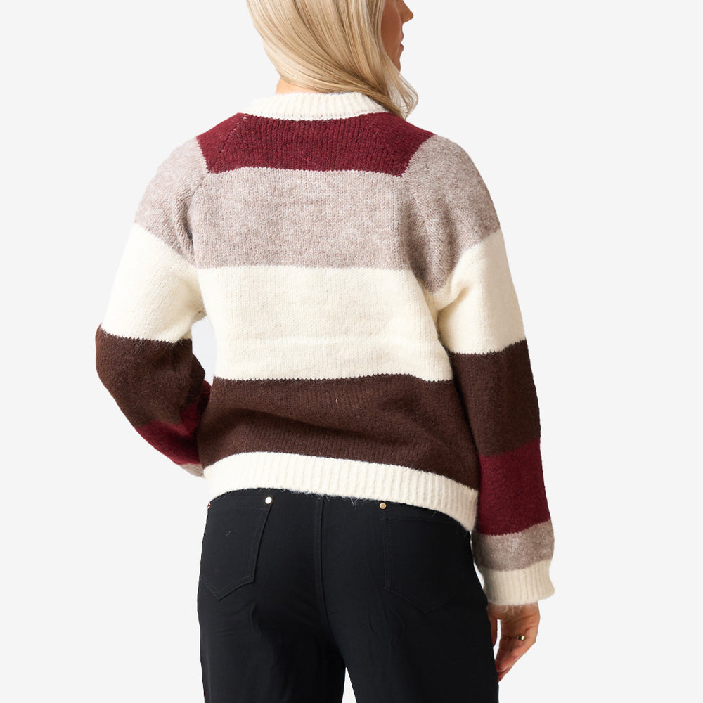 Färgstark och trendig stickad kofta. Tillverkad i en mjuk och värmande mix med ull för extra värme under kyliga dagar.