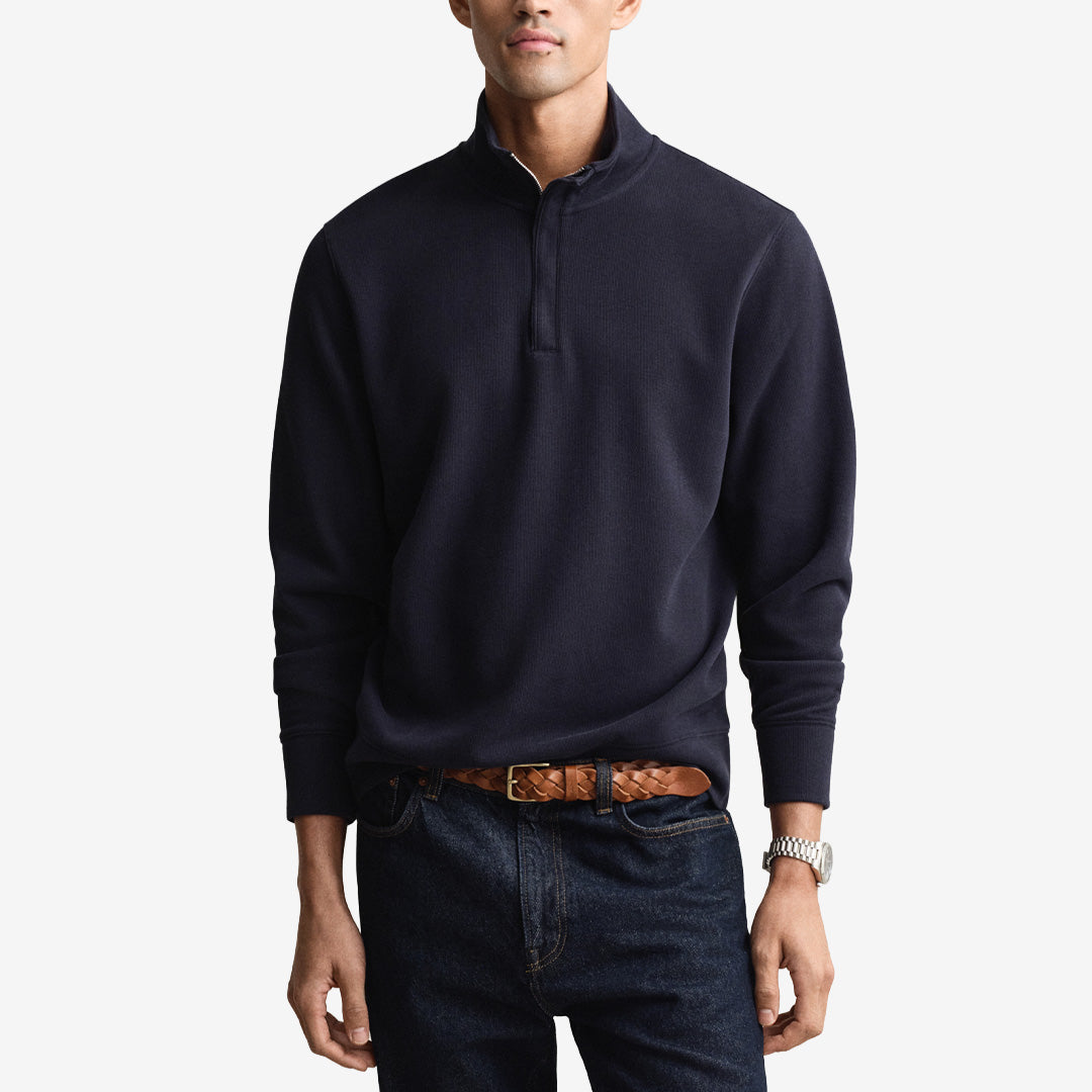 En stilren half zip tröja från Gant som erbjuder samma komfort som en sweatshirt men med en mer uppklädd känsla. Tillverkad i 100 % bomull med mjuk kvalitet och regular fit. Tröjan passar både till vardags och till mer uppklädda tillfällen.