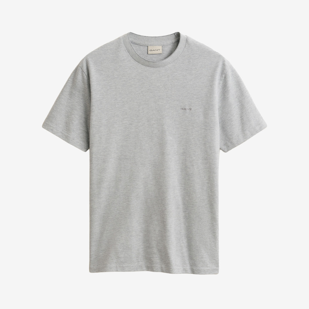 En t-shirt från Gant som är tillverkad i 100 % bomull med en tvåfärgad piqué-textur som ger ett stilrent och lätt strukturerat uttryck. Modellen är i regular fit och har kort ärm, ribbad rund halsringning och en diskret broderad Gant-logotyp på bröstet.