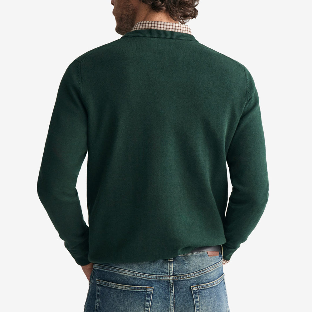 Denna hållbara och sofistikerade tröja från GANT är tillverkad i 100% bomull och erbjuder en regular fit för optimal komfort. Med en klassisk crew neck och ribbade detaljer vid nederkanten och ärmsluten, förenar den tidlös stil med funktion. Tröjan är prydd med ett broderat GANT-sköld på bröstet, vilket ger en elegant touch och en känsla av arv. Perfekt för både vardag och mer formella tillfällen.