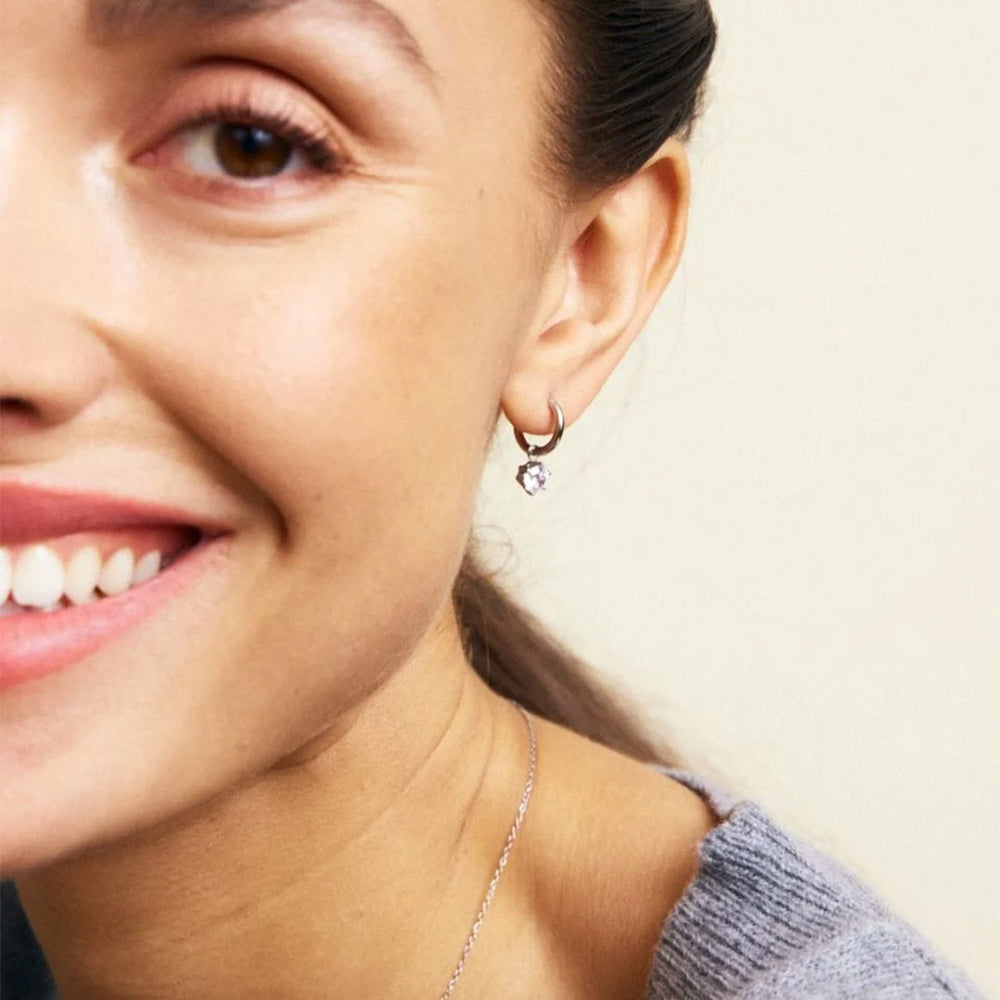 Crown Hoops har den fint infattade klara stenen hängade i ringen. Klassiska örhängen som är fina att bära till både vardags och fest. Den hängande stenen går att ta av från ringen och du kan också hänga på något mer. Crown hoops ses här i blankt rostfritt stål. Serien Crown är en mycket uppskattad present.