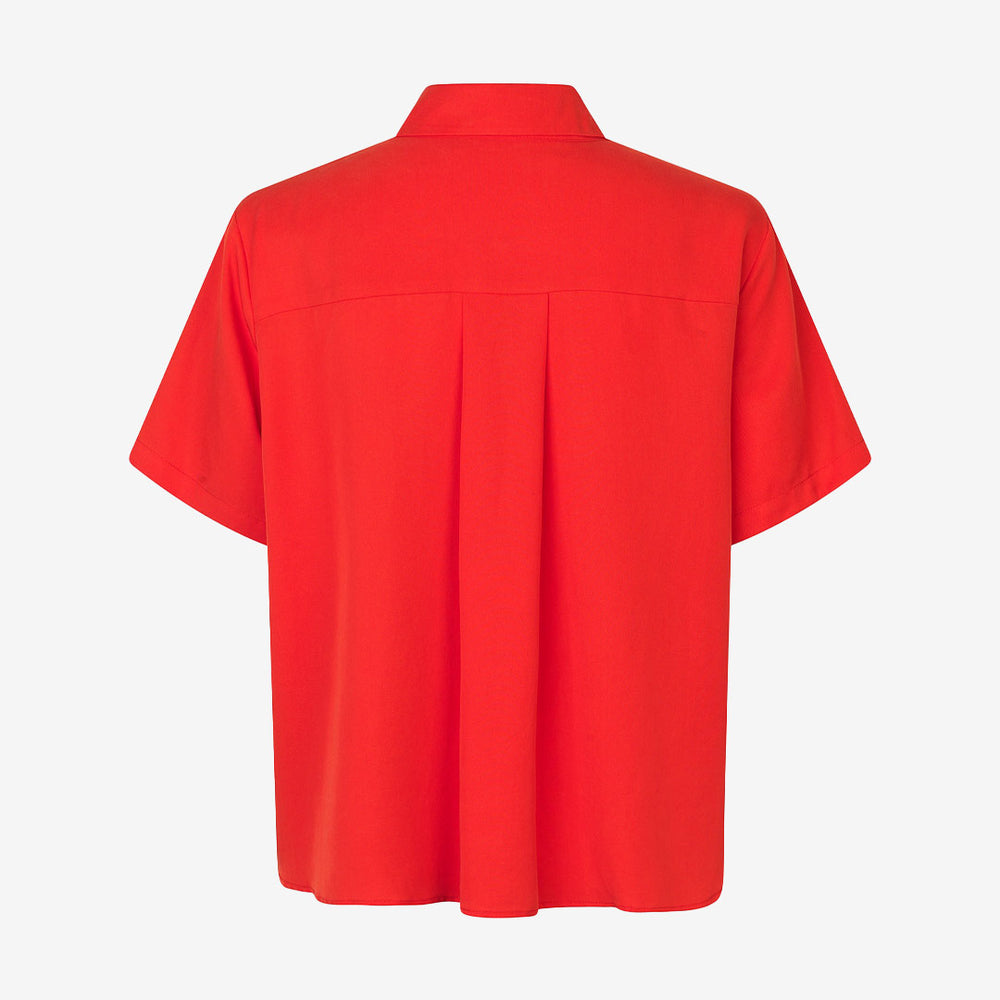 Mina SS Shirt från Samsoe Samsoe är en kortärmad skjorta med lös passform och nedhasade axlar för en avslappnad siluett. Skjortan har dold knappstängning framtill samt ett ok i nacken med veckade detaljer som ger en elegant touch. Tillverkad i 100% TENCEL™ Lyocell – en fiber med låg miljöpåverkan, framställd från ansvarsfullt förvaltade träkällor. En luftig och tidlös skjorta som passar perfekt för varma dagar eller lager-på-lager styling.