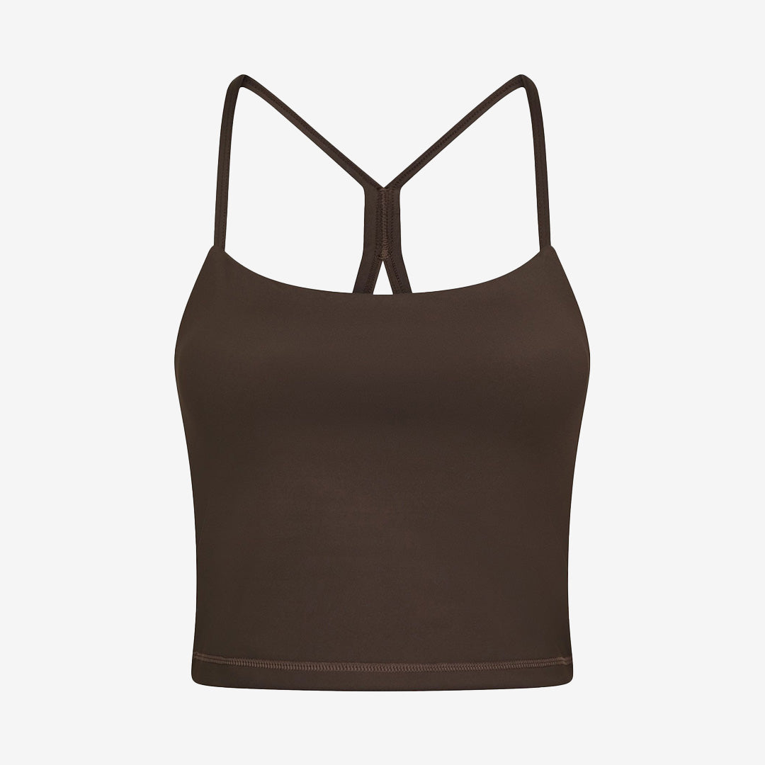 Tirri top chocolate brown – sportig kroppsnära topp i stretchigt chokladbrunt material